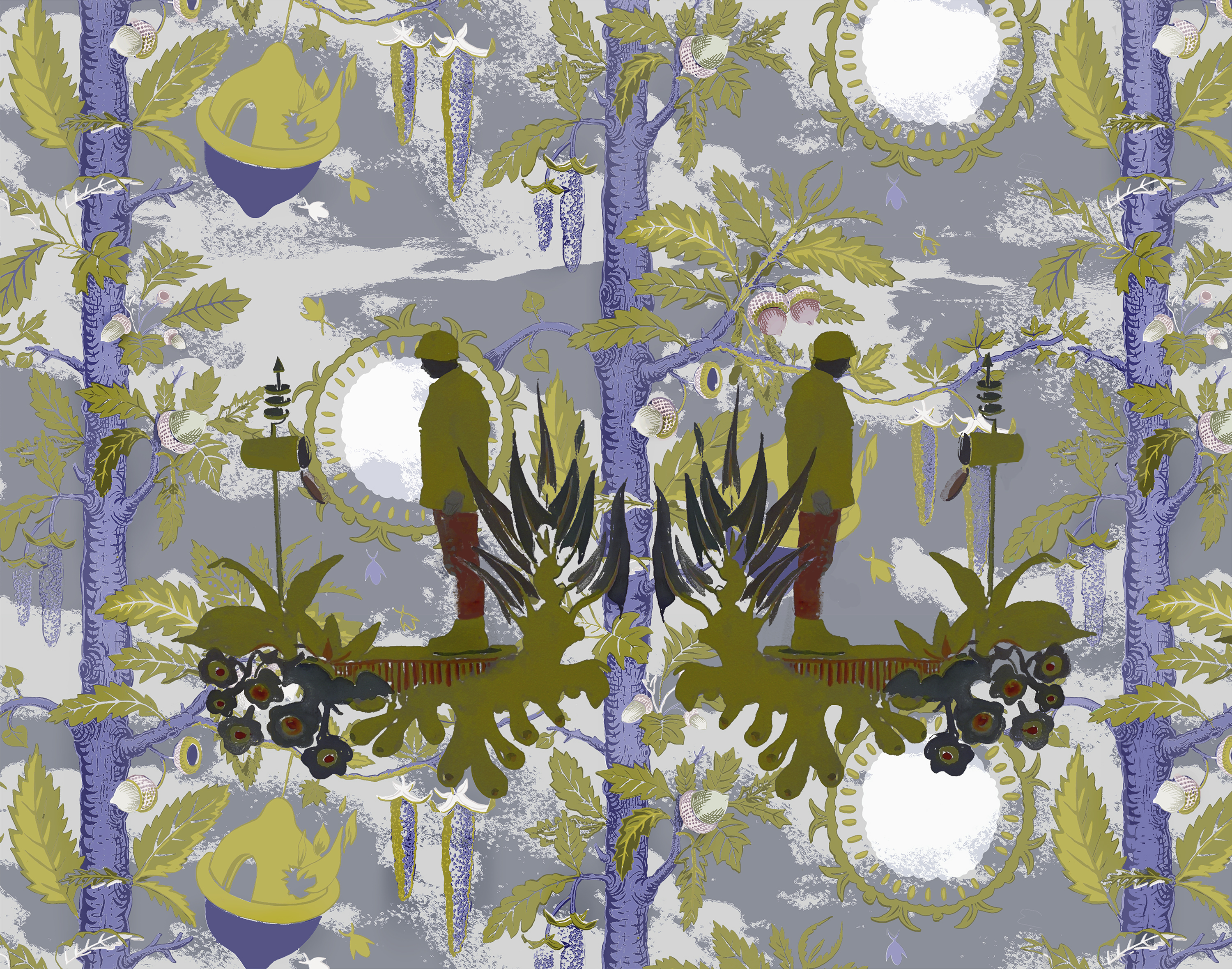 ”My base is evolved in figurative painting. Solitary compositions. In relation to this and in some sense in opposition to this I have developed pattern repeated works. Many of these are printed on textile material or transformed into works on paper, ceramic tiles etc. Both painting and pattern-repeated works are figurative and charged with narrative/associative values. ”