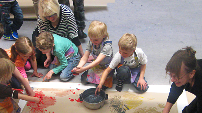Lyssna, känn och skapa! Workshopen har två delar; först blir det musik-berättelsen Spökhuset. Därefter blir det målning i storformat, med slemmiga, varma och kalla färger. En workshop om mod, rädsla och lite av varje.