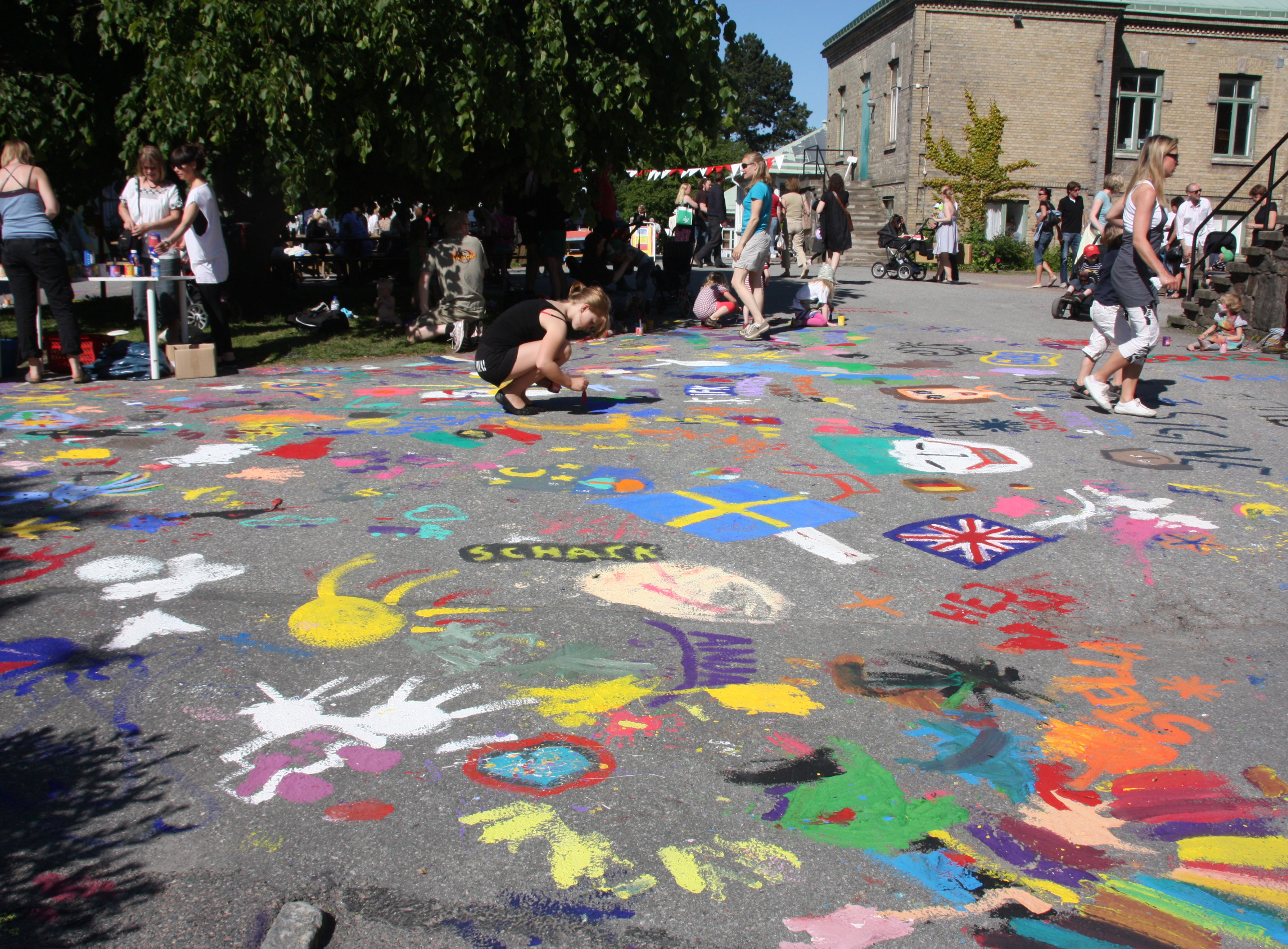As every annual Open day: children paints large and freely and fill the asphalt with color.
