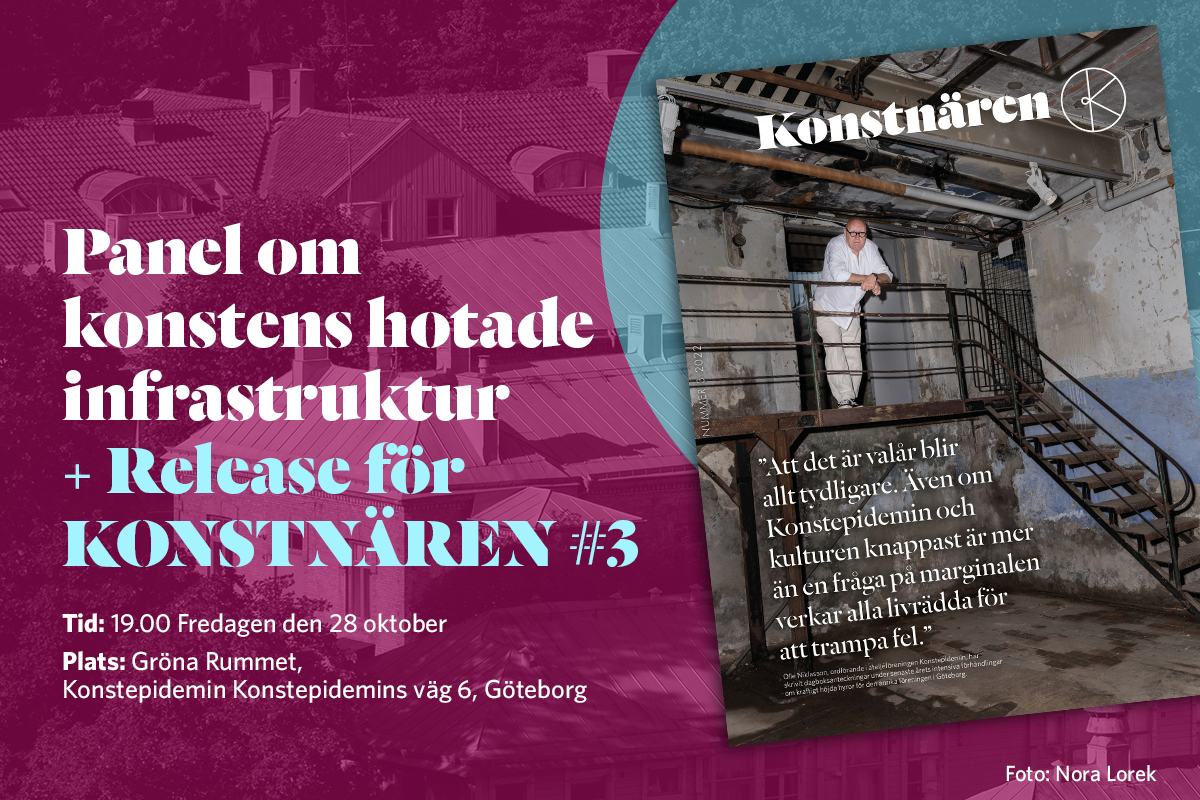 I nya numret av Konstnären beskrivs Konstepidemins situation och mycket mer kring konstens relation till demokratiska pricesser. Under en kombinerad release för nya numret av Konstnären samt en paneldiskussion på Konstepidemin under Kulturnatta kl 19.00 den 28 oktober kommer frågor om kulturpolitikens relation till konstnärerna stå i fokus.